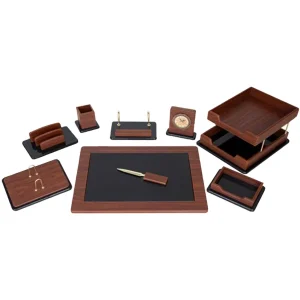 | اقلام موجود در ست | کازیه, جاقلمی (استند خودکار), جای کاغذ یادداشت, پایه چسب, جامدادی رومیزی, جای نامه, پانچ, منگنه, استند تقویم |