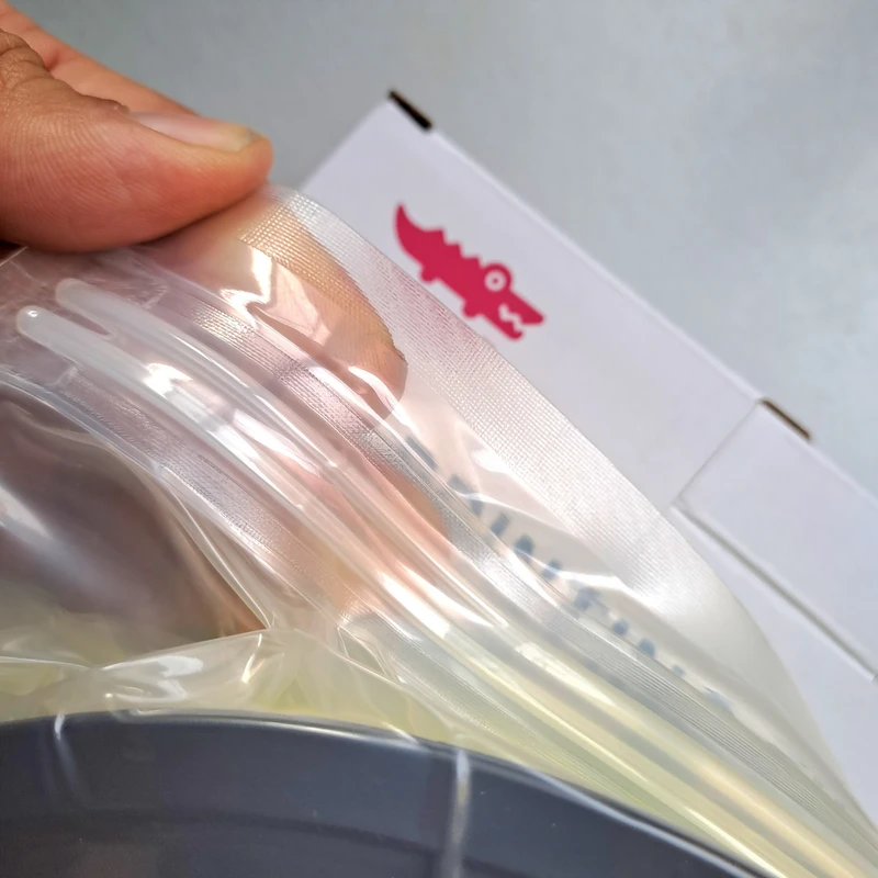 پاکت وکیوم شده رول دارای سه ردیف زیپ کیپ (Zip Keep) است که پس از هر بار استفاده از رول و در صورت نیاز به کنار گذاشتن (تا مصرف بعدی) می توانید به کمک این زیپ کیپ ها از تماس فیلامنت با هوا (و در نتیجه کاهش کیفیت فیلامنت و شکننده شدن آن) جلوگیری کنید. برای باز کردن این پاکت وکیوم شده نیز احتیاجی به کارتر یا قیچی ندارید و براحتی با دست می توانید آنرا باز کنید.